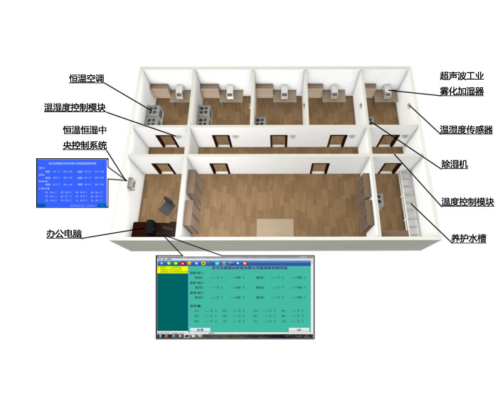 國家新標準《普通混凝土力學(xué)性能試驗方法標準》GB/T50081-2002對標準養(yǎng)護室試塊養(yǎng)護要求與ISO試驗方法相同,要求溫度20±2℃,相對濕度為95%以上,標養(yǎng)室應(yīng)為霧室,試件表面保持潮濕,不能直接噴水或沖淋。按此規(guī)定要求,我公司使用液晶屏或數(shù)碼管溫濕度控制儀、進行防潮改裝后的空調(diào)等加熱制冷設(shè)備、超聲波工業(yè)霧化加濕器來達到溫度和濕度恒定,以滿足國標要求。