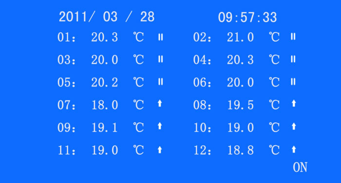 6、十二路溫度顯示,可同時(shí)測(cè)量12格的溫度。
